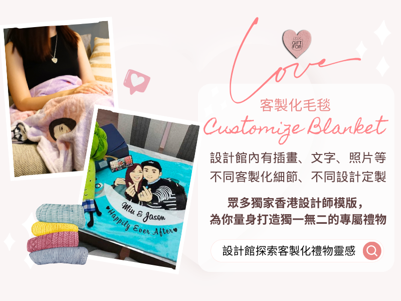 讓HKGIFTFORU為您打造獨一無二的情人節客製禮物,毛毯、抱枕、情侶杯掛布等,有似顏繪插畫/定製名字、照片等選項!價錢只由$250起,探索個性化禮物,打造更有意義更深刻的情人節個人化禮物!